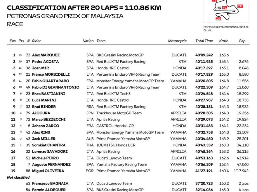 続きを読むアレックス・マルケス、序盤からの積極策で完勝 アレックス・マルケスは、前日の反省を活かして序盤からアグレッシブに前へ出る明確な戦略でマレーシアGPに臨んだ。アコスタとバニャイアをかわしてからは自分のリ