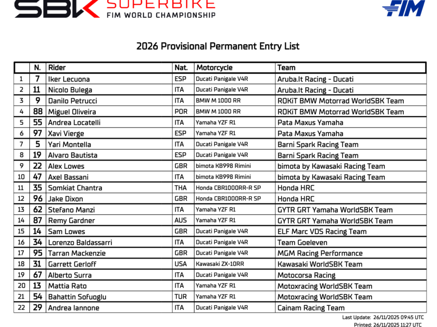 2026年のFIM スーパーバイク世界選手権(SBK)のラインナップが出揃った。2026年は王者トプラック・ラズガットリオグルがMotoGPから参戦することになったため、Aruba.it から継続参戦