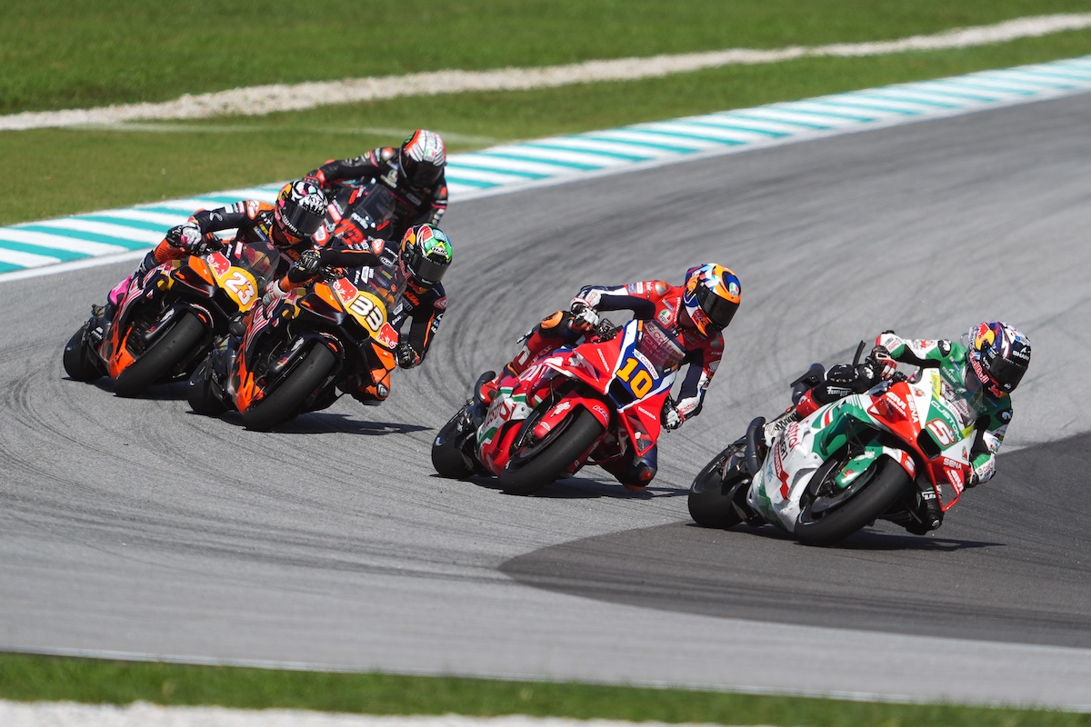 ルカ・マリーニはスタートでミルと並ぶ好ダッシュを決めたが、序盤の小さなミスで後方に後退。そこからヨハン・ザルコとの長いバトルに巻き込まれた。終盤にはザルコを振り切り、クリーンエアでペースを上げて8位でゴール。今季初転倒の翌日にしっかりとポイントを取り戻し、ホンダ勢トップ争いでザルコとの差を6点に詰めた。