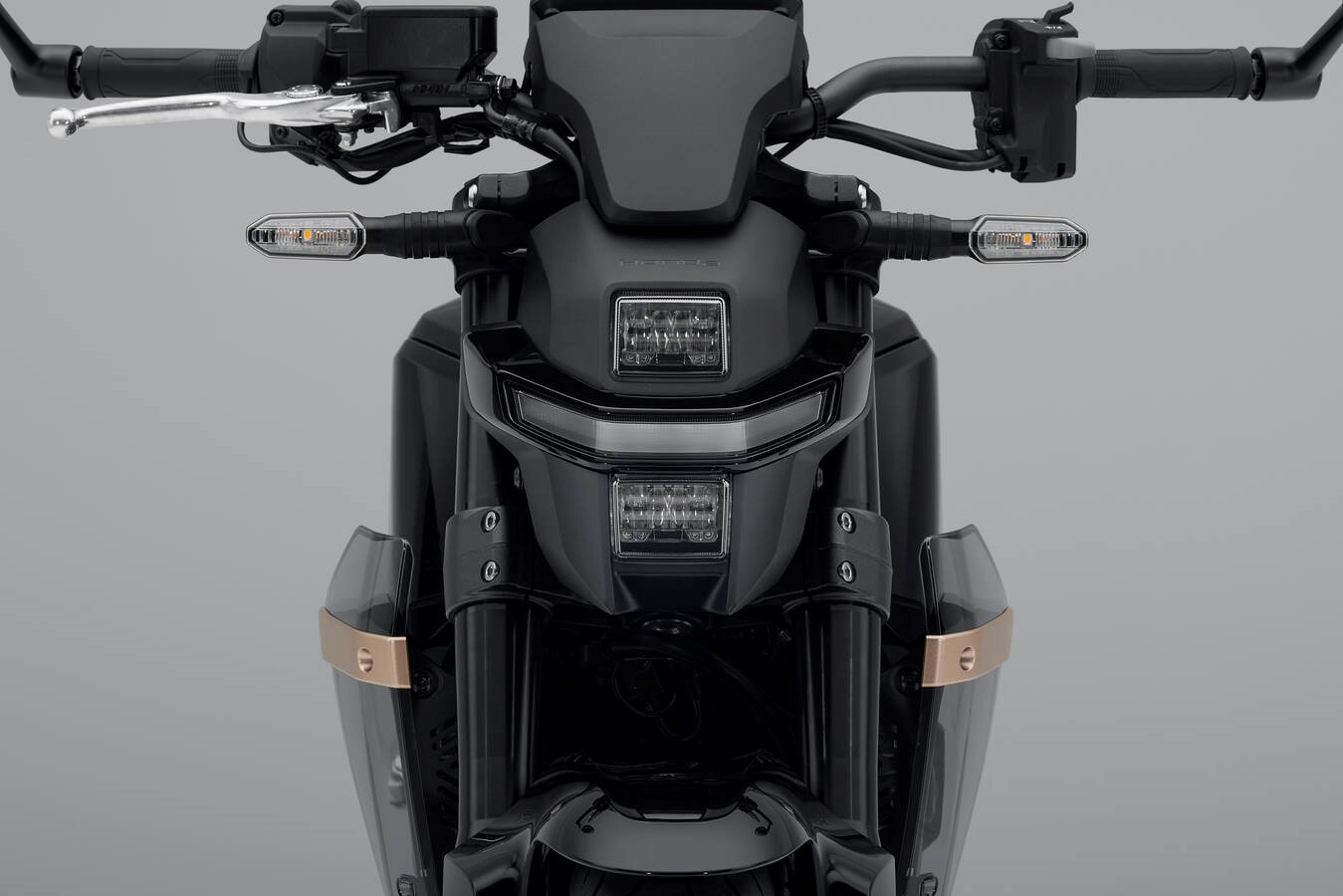 メーターには視認性の高い5インチTFTカラー液晶を採用。Honda RoadSyncアプリを介して、スマートフォンとの接続、ナビ、通話、音楽再生、さらにはEV専用情報(残航続距離、平均電力消費量、充電状況など)を表示可能。USB-Cポートも装備され、スマートキーによる起動も標準装備。