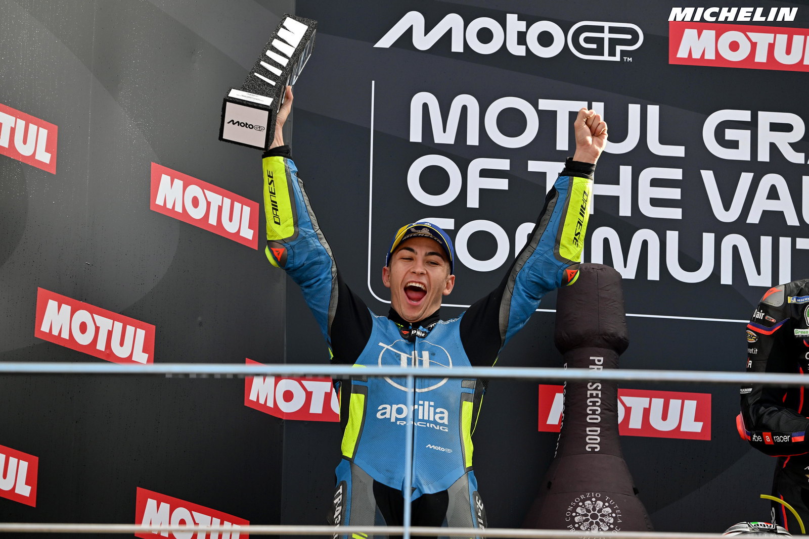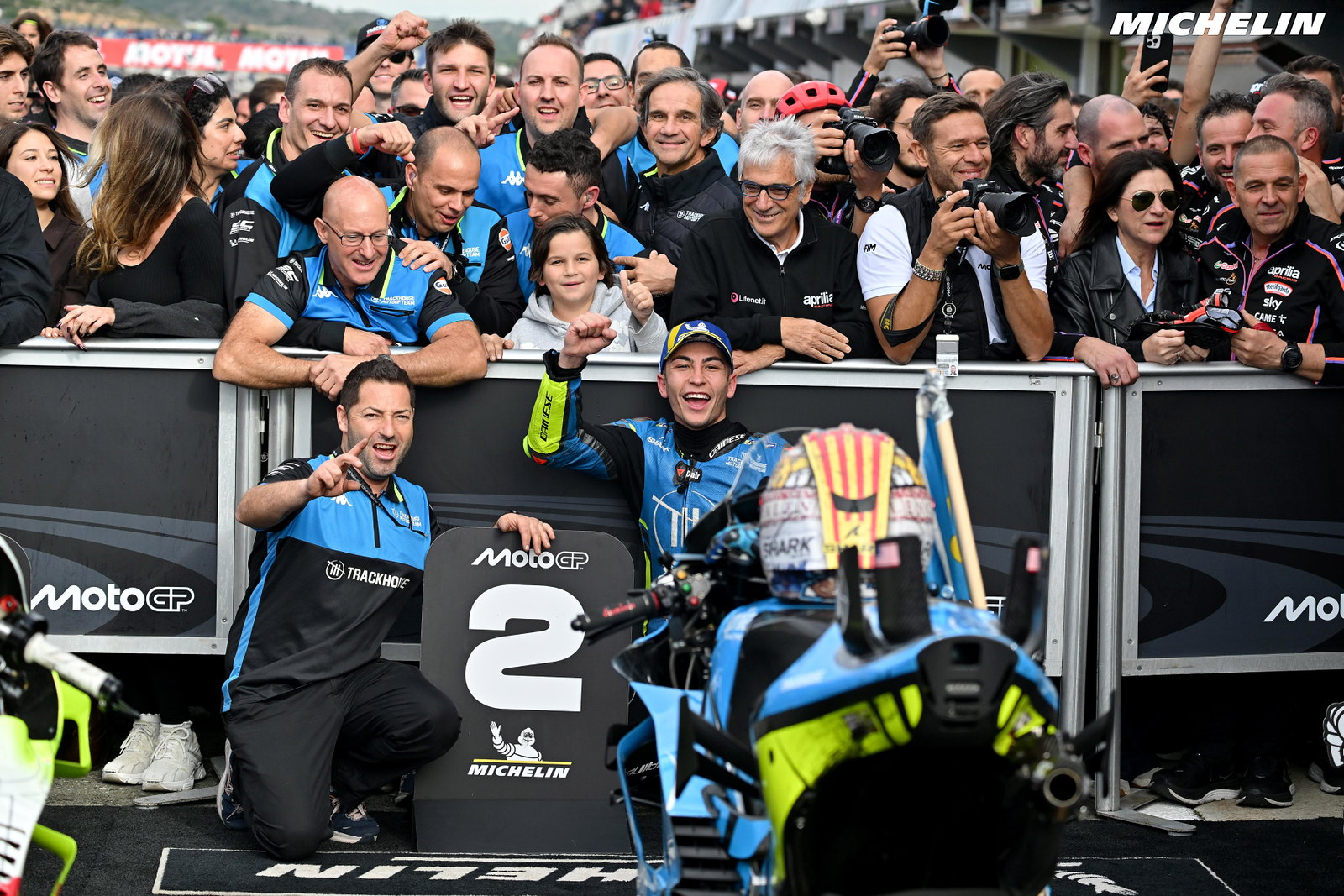 「本当に嬉しいです。ポルトガルで転倒した後は、バレンシアでレースに参加できるとは思っていませんでしたし、優勝争いができるなんて思っていませんでした。肩の怪我は痛みますがこれは言い訳になりません。マルコのほうが速いコーナーもありましたが、自分のほうがスピードがあるコーナーもありました。いずれにしても自分にとっても家族にとっても素晴らしい結果でした。自分にとってもMoto3で弟が優勝を飾りましたから最高の1日でした。シーズンをこういった形で終えるのは非常に重要です。戦闘力も感じていますし、バイクも快適です。2026年に向けてしっかり準備ができていると思います。もちろんタイトル争いができるとは思いませんが、まだ自分も若いですから多くを学べると思います。いずれにしても本当に楽しんだレースでした。」