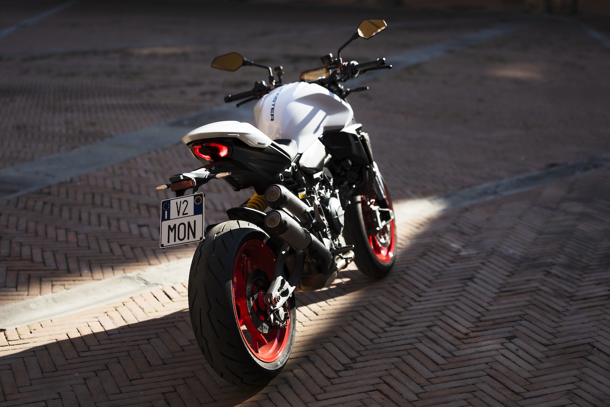 新型モンスターは、日常使いからワインディングまで対応する二面性を持つ。ショーワ製サスペンションが快適性とスポーツ性を両立させ、操縦性の高さと安定性を両立。ライディングポジションも見直され、前モデルよりシート高を低く(815mm、専用キットで775mmまで調整可能)しつつ、ハンドルは高くかつ前方に配置され、よりリラックスした操作性を実現している。