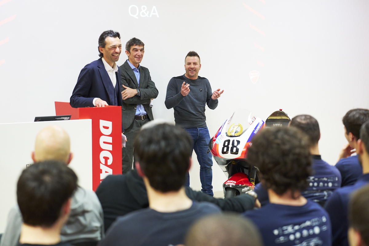 12月15日朝には、ドゥカティ財団が運営する理科教育施設「Fisica in Moto Powered by Lenovo」にて、本勝利を祝う報告会が開催された。会にはドゥカティCEO兼ドゥカティ財団会長のクラウディオ・ドメニカリ、ボローニャ大学のジョヴァンニ・モラリ学長、ユニボ・モータースポーツのファカルティ・アドバイザーであるニコロ・カヴィーナ、ドゥカティのイノベーション&R&Dサービス部門マネージャーのシモーネ・ディ・ピアッツァらが出席し、プロジェクトの軌跡を振り返った。