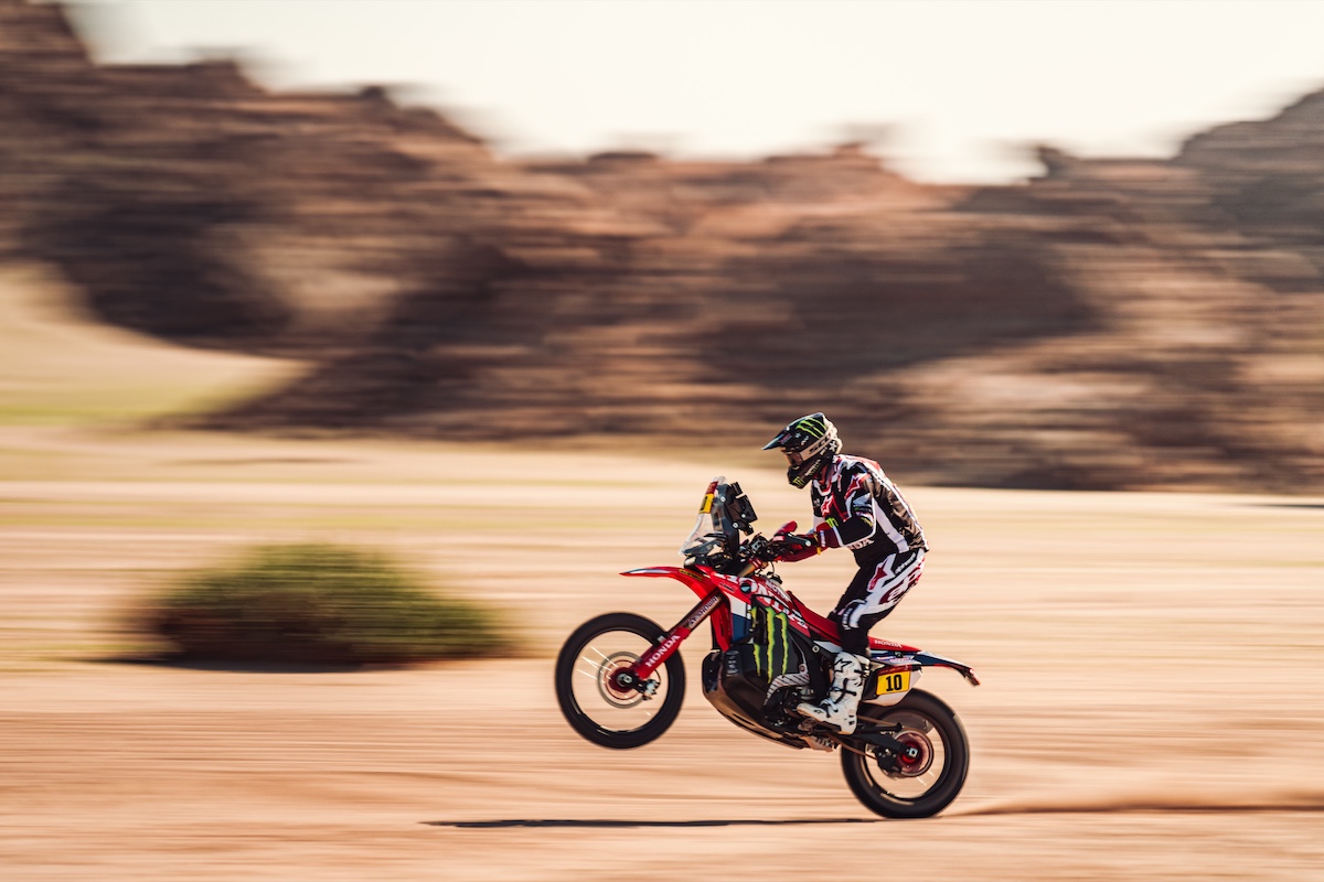 2026年のダカール・ラリーがサウジアラビア・ヤンブで開幕。Monster Energy Honda HRCは、世界で最も過酷なラリーの初日プロローグに臨み、堅実なスタートを切った。全長22kmのタイム計測区間は、ロックセクションや高速フラット、変化に富んだ地形が連続する難コース。ライダーたちはヤンブのスタート地点から41kmのリエゾンを経て、この超高速ループに挑んだ。ホンダ勢の最上位は、2020年の総合優勝者リッキー・ブラベック。KTMのエドガー・カネットからわずか5秒差の3位に入り、翌日のステージ1に向けて有利なスタート順を選択できる好位置を確保した。