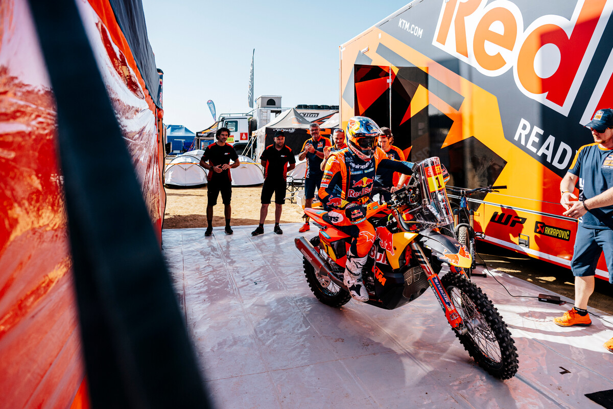 サンダースは、カネットのすぐ背後でステージ全体を走行。前走者のダストの中での走行を強いられたが、確実なパフォーマンスで2位を確保。ディフェンディングチャンピオンとして、安定した立ち上がりを見せた。ホンダ勢ではリッキー・ブラベックが3位、トシャ・シャレイナが4位と好位置につけたが、開幕からのKTM勢の勢いは明白だ。