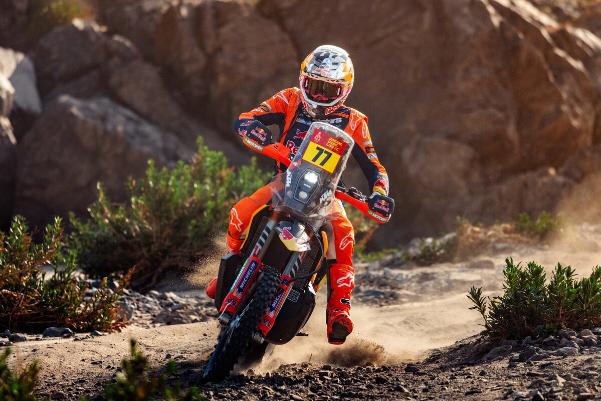 2026年ダカール・ラリーのステージ1(1月4日/ヤンブ)は、Red Bull KTMファクトリーレーシングの完全勝利で幕を開けた。エドガー・カネットがキャリア初のフルステージを制し、プロローグからの2連勝を達成。ダニエル・サンダースが1分2秒差で2位に続き、KTMが開幕から主導権を握った。ルチアーノ・ベナビデスも5位に入り、KTM勢3名がトップ5に名を連ねる好発進となった。