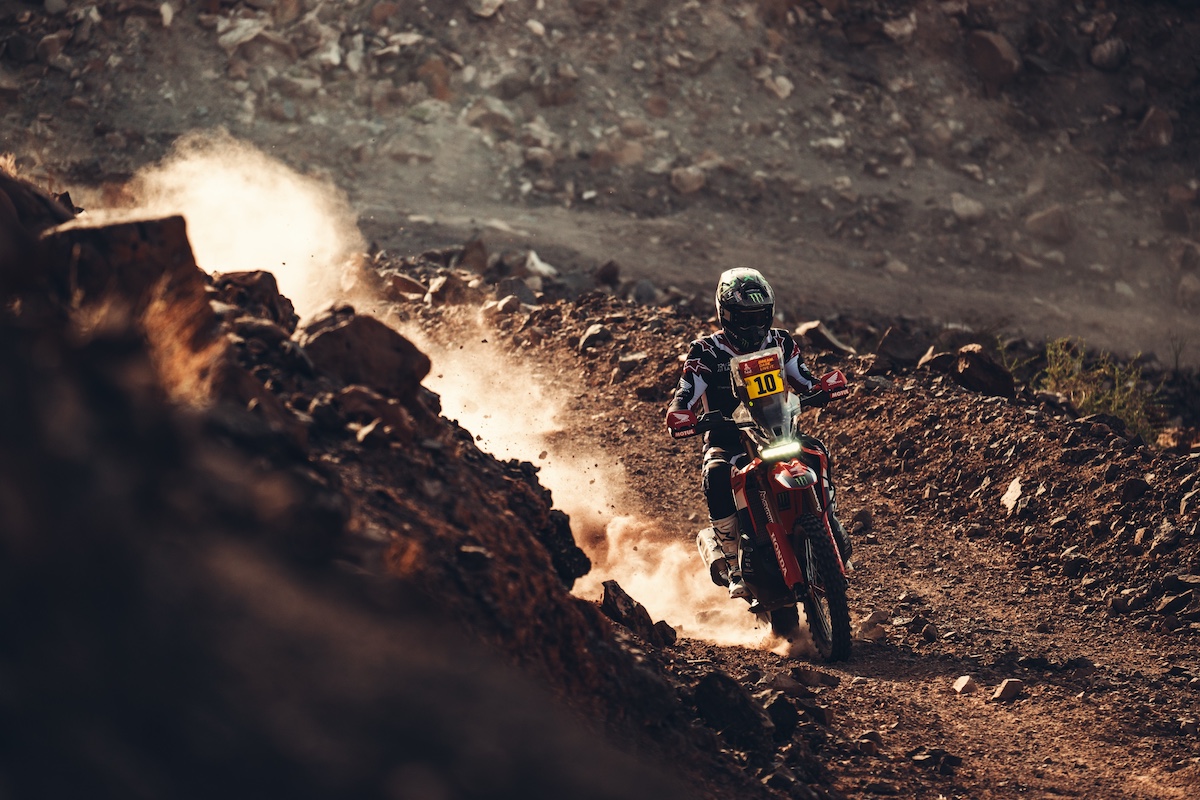 初日の転倒から立て直したスカイラー・ハウズは、CRF450 RALLYの状態が万全となり、得意のサンドセクションで実力を発揮。第2ステージは4位で終え、総合でも7位に浮上した。