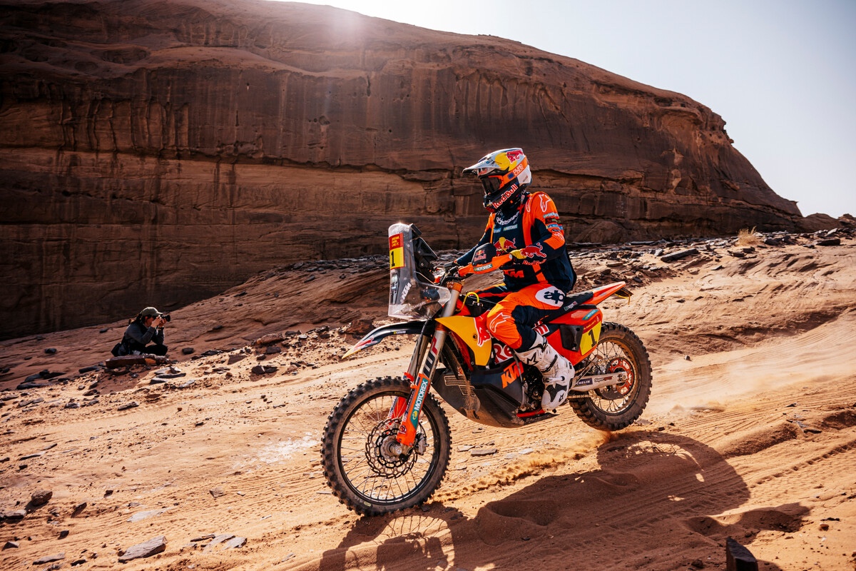 2026年ダカール・ラリー第4ステージ、レッドブルKTMファクトリーレーシングのダニエル・サンダースが、マラソンステージ前半を5番手で完走。ルシアーノ・ベナビデスは7位、エドガー・カネは8位で続き、KTMライダー3名全員が無事にビバークへ到着した。