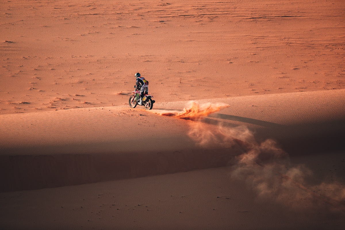 山間部の高速セクションと広大なダワジル渓谷の砂丘群、さらには岩場と高速サンド区間が組み合わさった複雑な構成で、ライダーたちにはスピードとナビゲーションの両立が求められた。