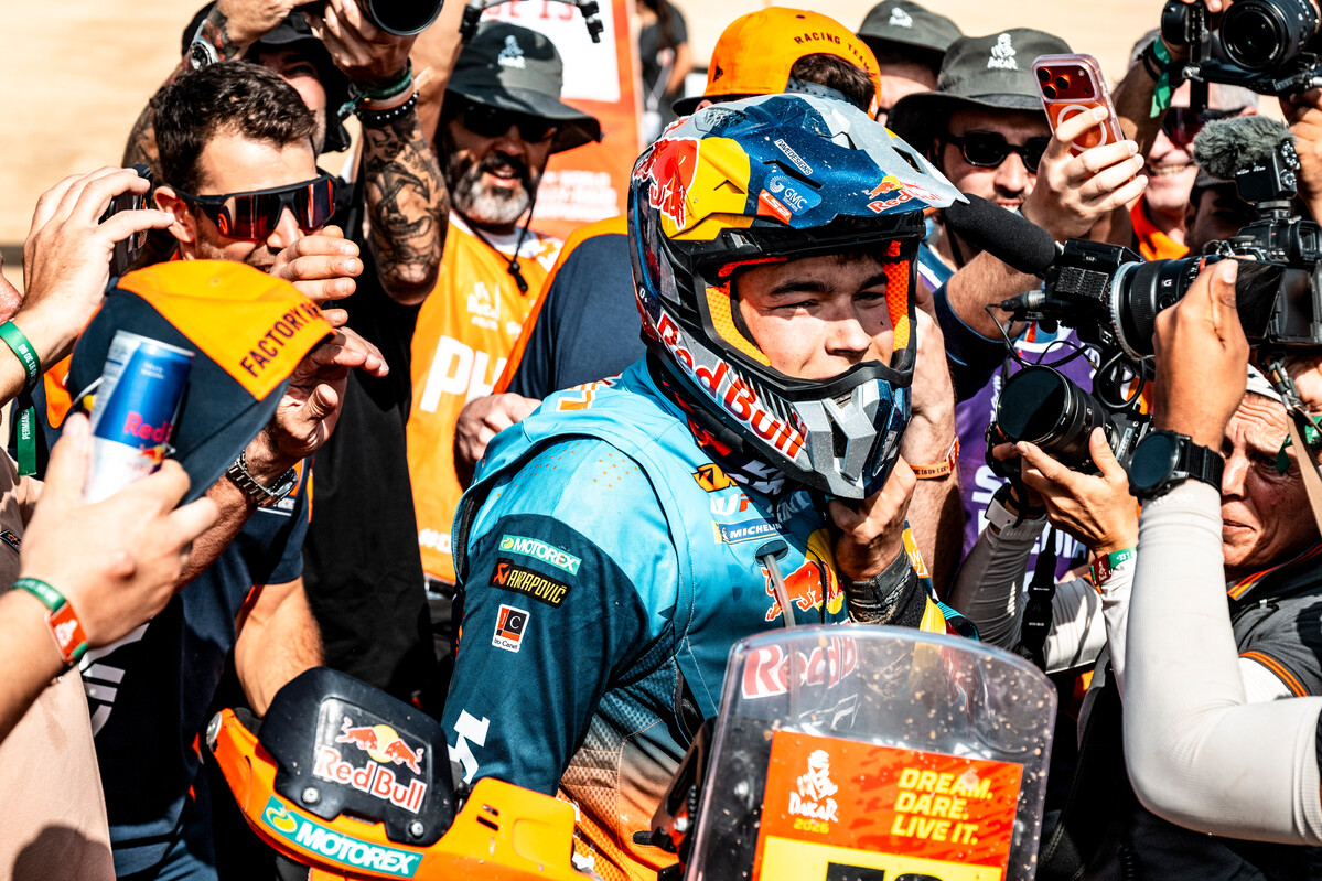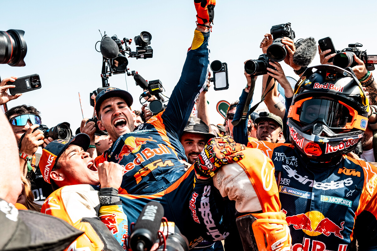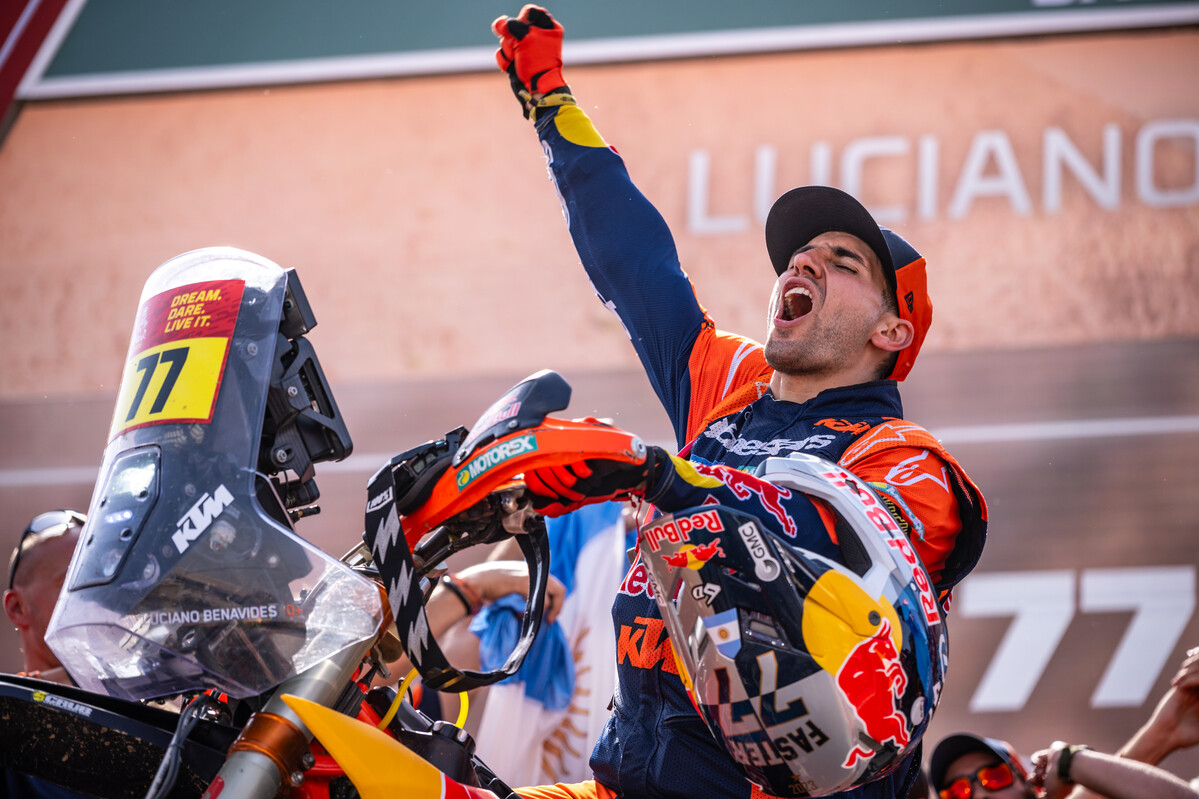 レッドブルKTMファクトリーレーシングのルチアーノ・ベナビデスが、かつてない僅差で総合優勝を果たし、自身初のダカール・タイトルを獲得した。最後の1kmまで攻め抜いたアルゼンチン人ライダーは、ホンダのリッキー・ブラベックをわずか2秒差で退け、歴史に残る逆転劇を完遂した。これにより、KTMは通算21回目のダカール制覇となった。
