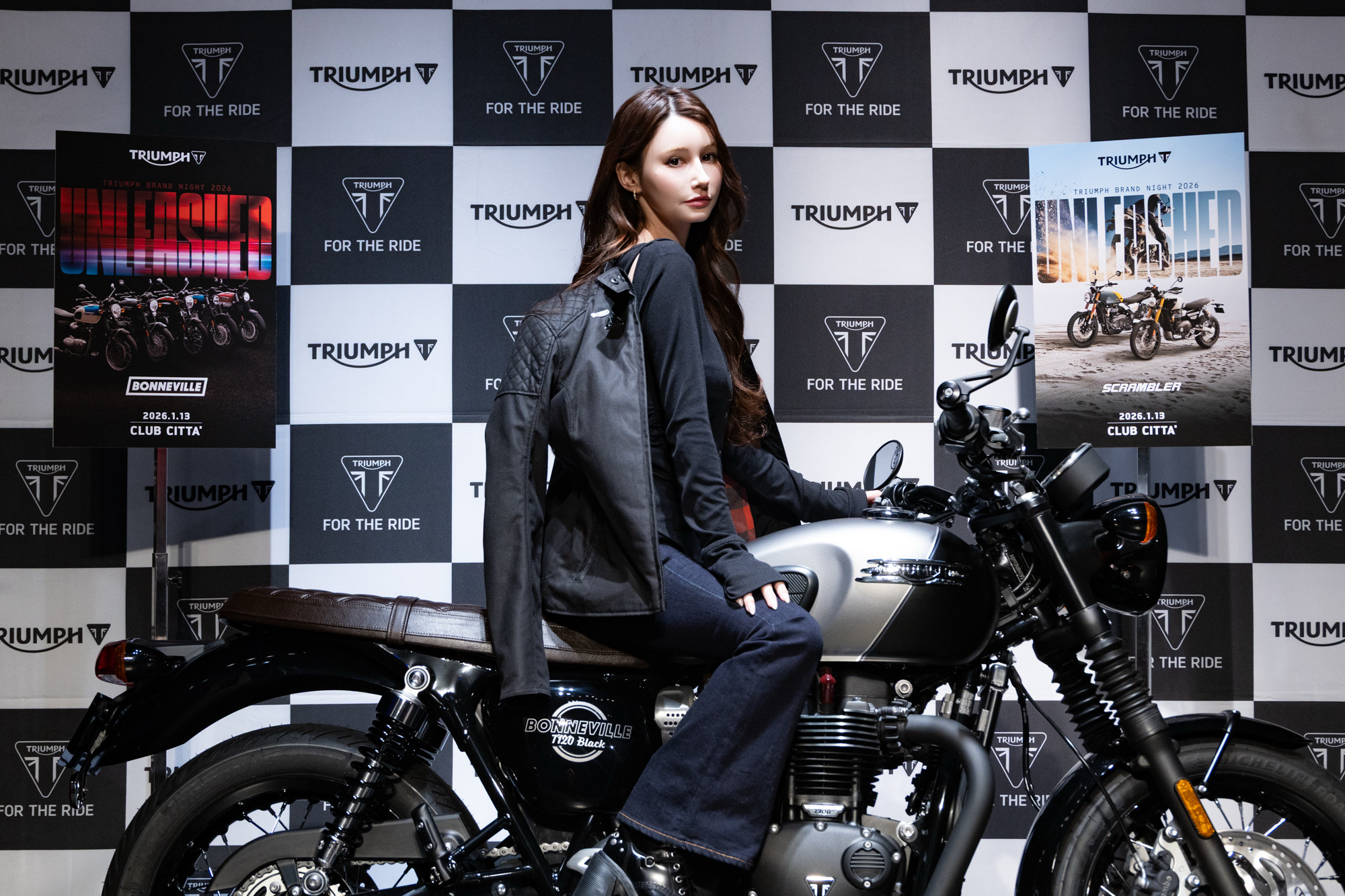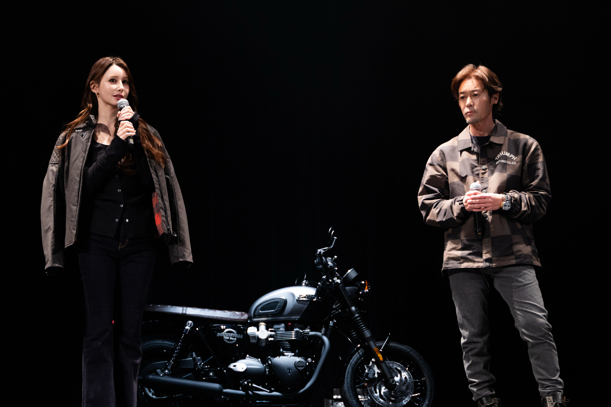 トライアンフモーターサイクルズジャパンは、新型「モダンクラシックシリーズ」の発表会およびブランドイベント「トライアンフ ブランドナイト」を開催。会場には、同シリーズの国内初披露に加え、新ブランドアンバサダーに就任したダレノガレ明美が登壇し、バイクへの情熱とトライアンフの魅力を語った。
