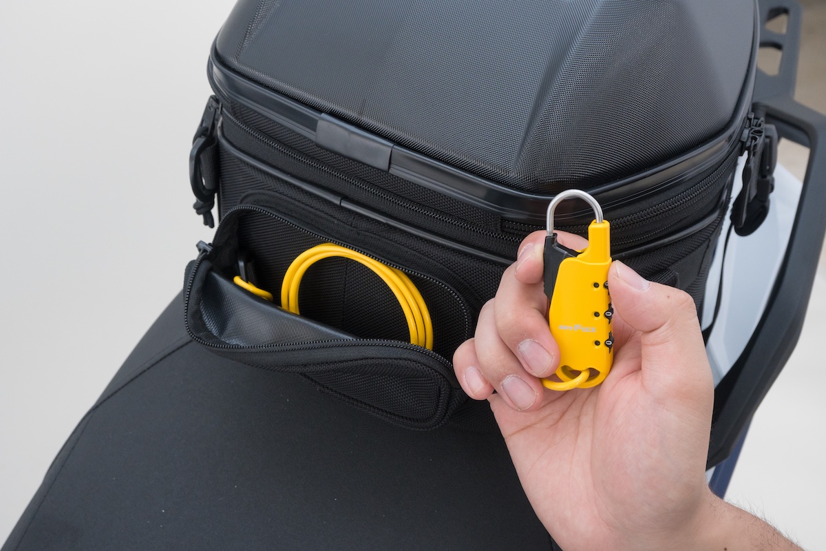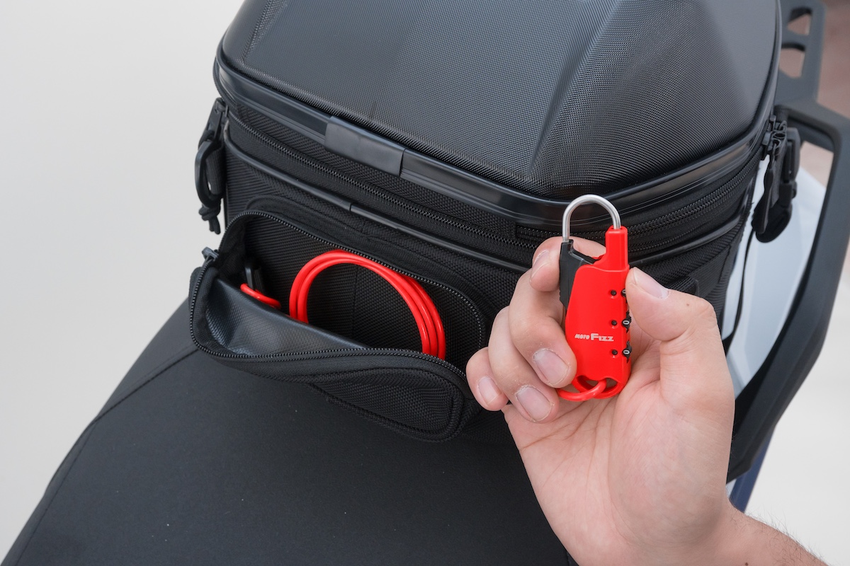 また、ワイヤーのループポイントを活用することで、バッグと車体を確実に固定できる。バッグを車両に取り付けたまま安心して駐車でき、ツーリング時の盗難リスクを大きく軽減する。