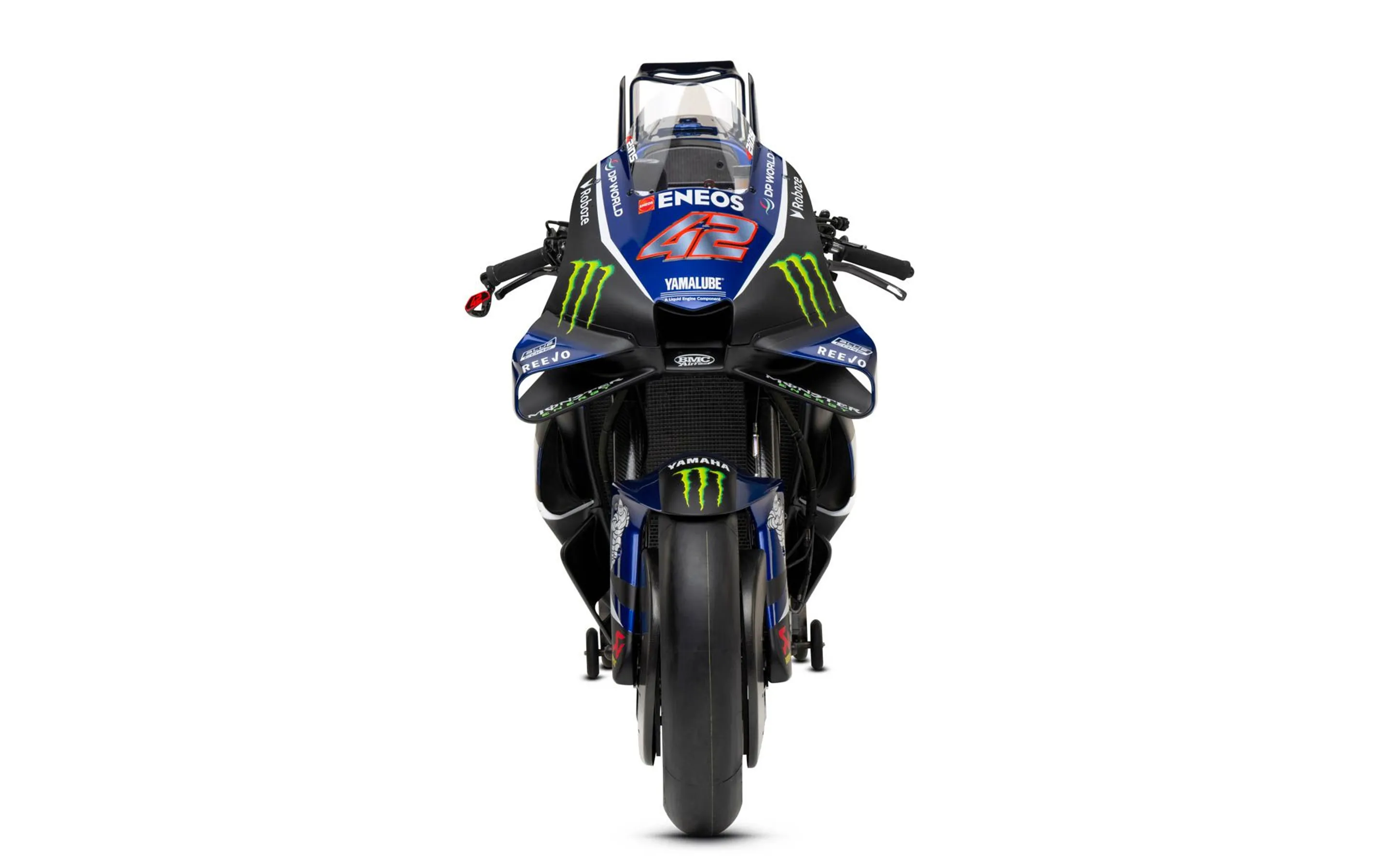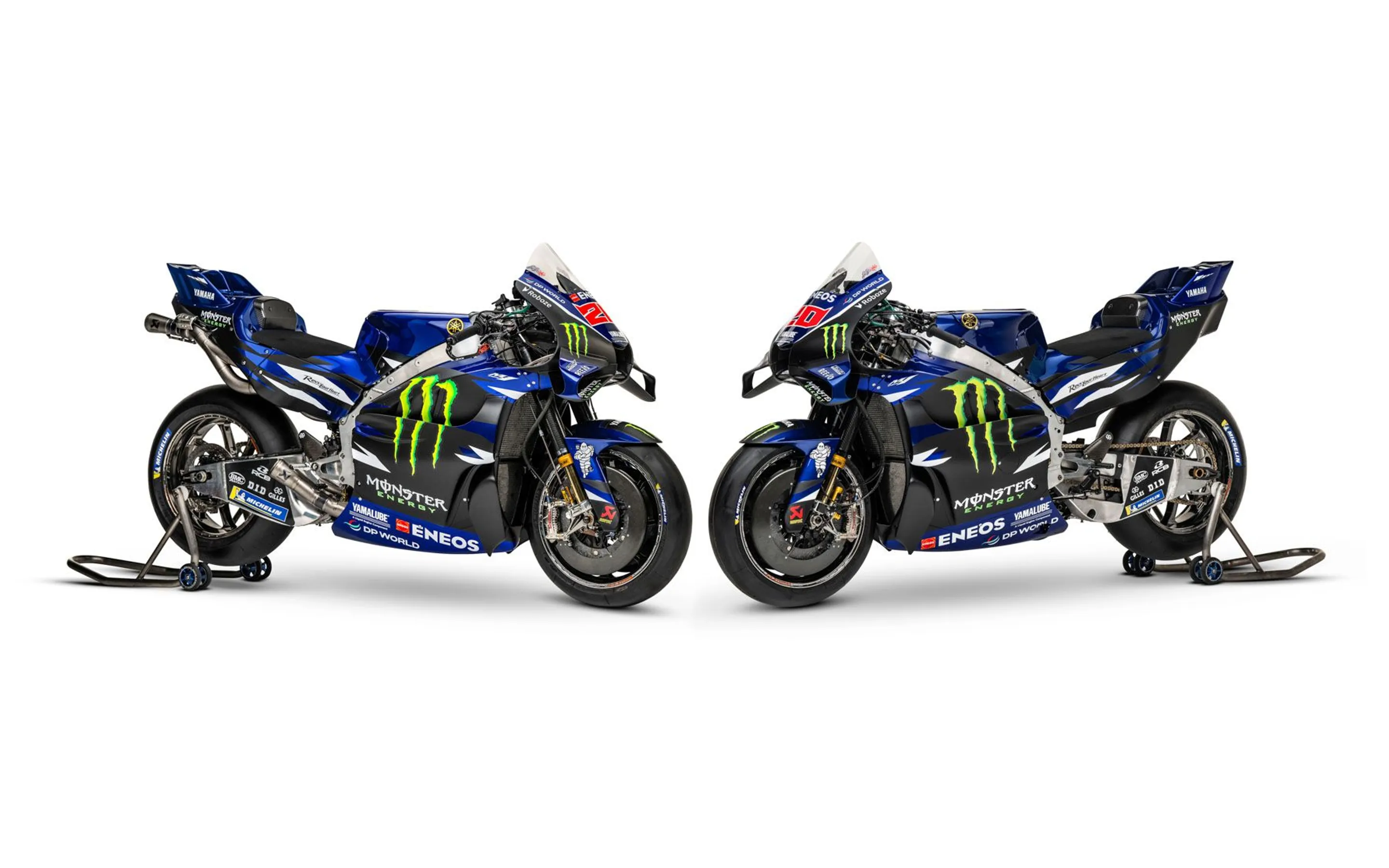 新マシンは、これまでの迷彩調デザインを継承しつつ、より鮮やかなブルーとホワイトを加えた新しいリバリーに刷新されている。2021年のワールドチャンピオン、ファビオ・クアルタラロとアレックス・リンスがこの新型マシンを駆り、ヤマハのV4時代を牽引する。