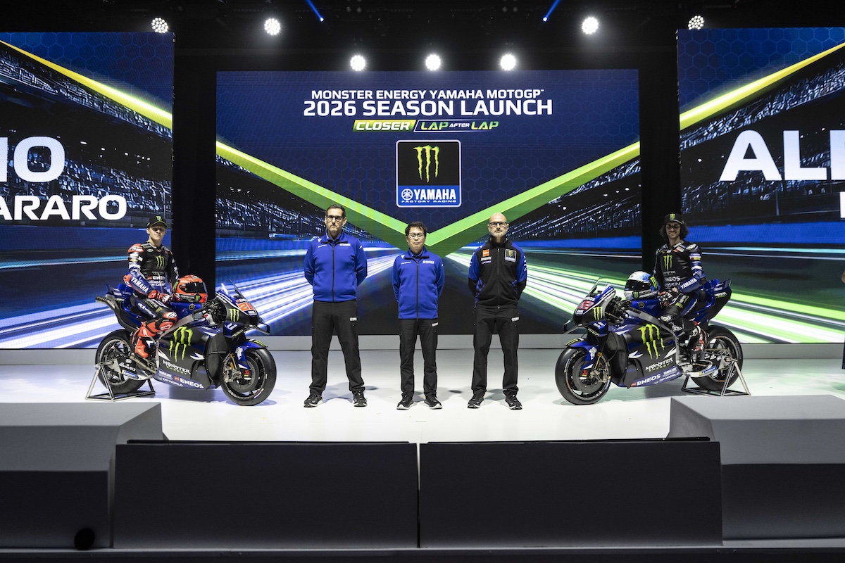 モンスターエナジー・ヤマハMotoGPチームが、2026年のチーム体制をインドネシア・ジャカルタで正式に発表した。今回のプレゼンテーションは、ヤマハ・モーター・インドネシアによる「3Sディーラーミーティング」の一環として行われ、新型V4エンジンを搭載したYZR-M1の新カラーリングが公開された。