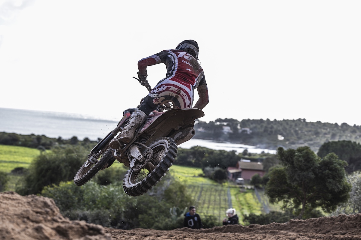 2026年インテルナツィオナリ・ディタリア・プロ・モトクロス選手権の開幕戦がサルディニア島アルゲーロで開催され、デスモ250 MXが記念すべき初表彰台を獲得した。ベッディーニ・レーシング・ドゥカティ・コルセ・ファクトリーMX2チームから参戦したフェルッチョ・ザンキがレース1で2位、レース2で6位に入り、総合3位を手にした。