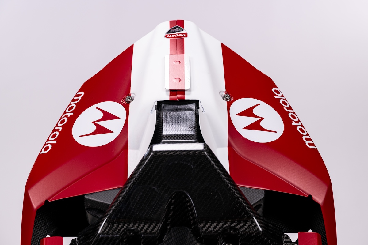 今回発表された新型パニガーレV4 Rは、1949年の「ドゥカティ60」や1955年の「グランスポルト・マリアンナ」からインスピレーションを受けた「ロッソ・チェンテナリオ(Centenario)」と名付けられたマットレッドを基調に、2本のホワイトストライプを配した記念仕様。最新電子制御やDucati Racing Gearboxなど、MotoGPと共有する技術を投入したマシンとなっており、SBKの舞台でタイトル獲得を狙う。