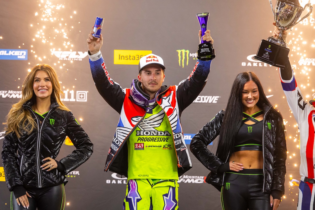 AMAスーパークロス第4戦ヒューストンのトリプルクラウン形式で、ホンダHRCプログレッシブのハンター・ローレンスがキャリア初となる450SXトリプルクラウンレース勝利を達成。全3レースの合算で総合2位に入り、チャンピオンシップリーダーのイーライ・トマックとの差を半分の4ポイントにまで縮めた。