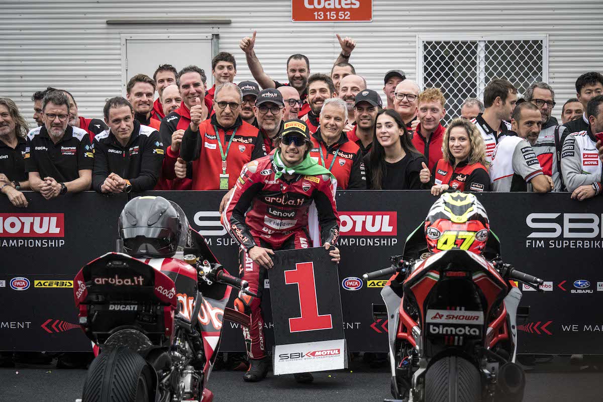 2026年WorldSBKオーストラリアラウンドで、ニコロ・ブレガ(Aruba.it Racing – Ducati)が再び歴史を塗り替えた。前日にドゥカティへ通算450勝目をもたらした#11は、この日も勢いを止めず、2大会連続ハットトリックを達成。通算23勝目を挙げ、マルコ・メランドリを抜いてイタリア人最多勝記録を更新した。
