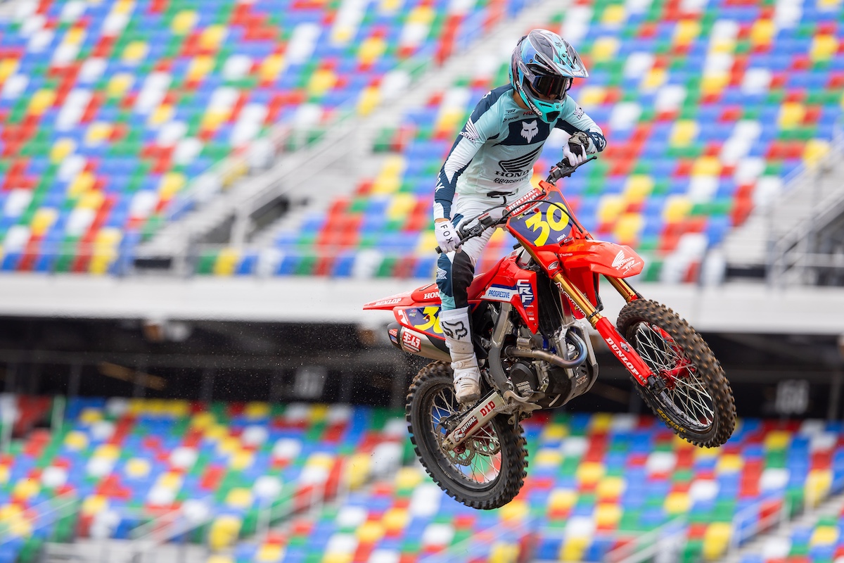 2026年AMAスーパークロス第8戦が伝統のデイトナ・インターナショナル・スピードウェイで開催され、Honda HRC Progressiveのハンター・ローレンスが2位を獲得。今季5度目の2位表彰台で450SXクラスのランキング首位を維持した。チームメイトの下田丈は250SXイーストで優勝争いを展開するも終盤の転倒により4位でフィニッシュ。それでも両者ともタイトル争いの中心に踏みとどまっている。