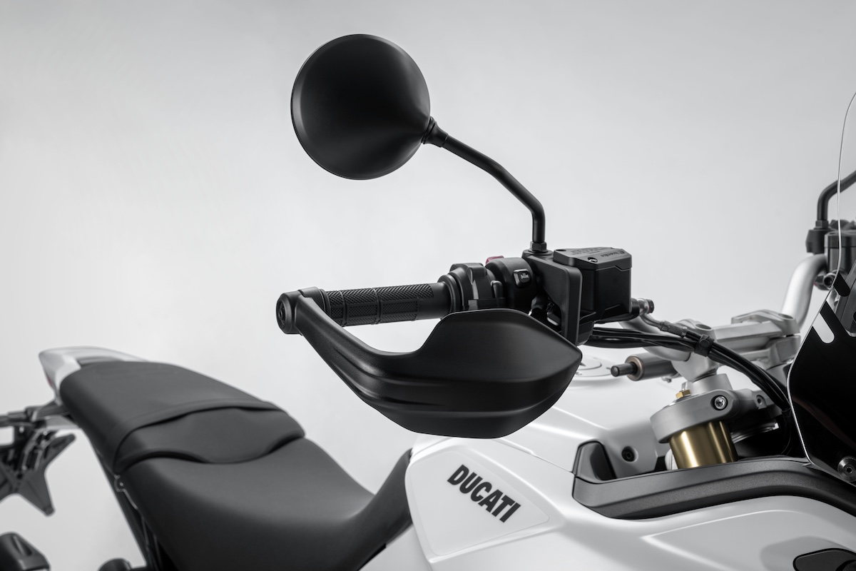Ducati Performanceアクセサリーとして、8リットル容量のリア補助タンク、ラジエーターガード、ブルバー、大型スクリーン、強化ハンドガードなどを用意。アルミパニアや、Mosko Motoと共同開発したソフトバッグもラインアップされる。