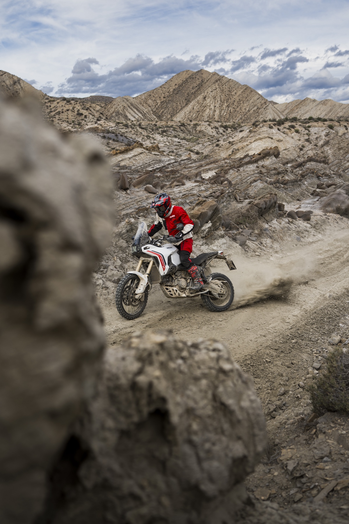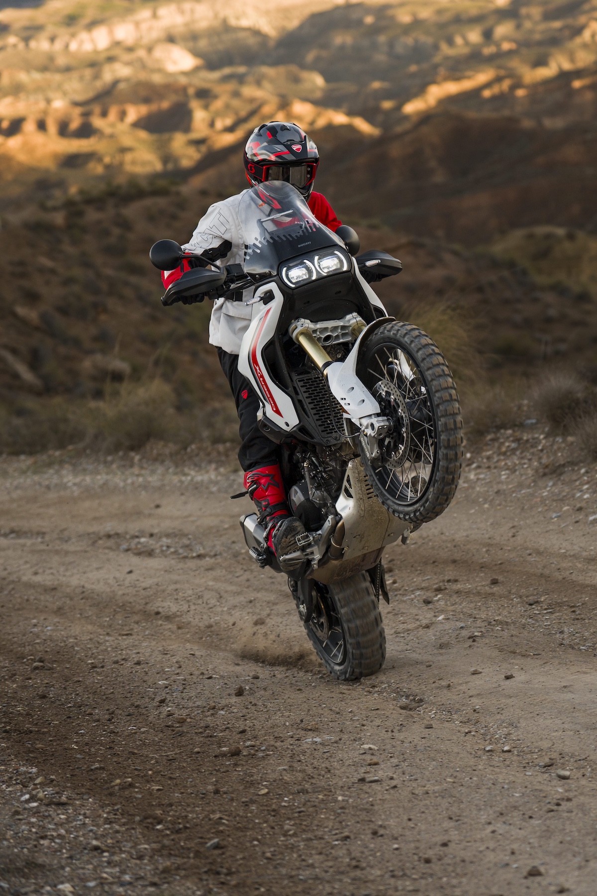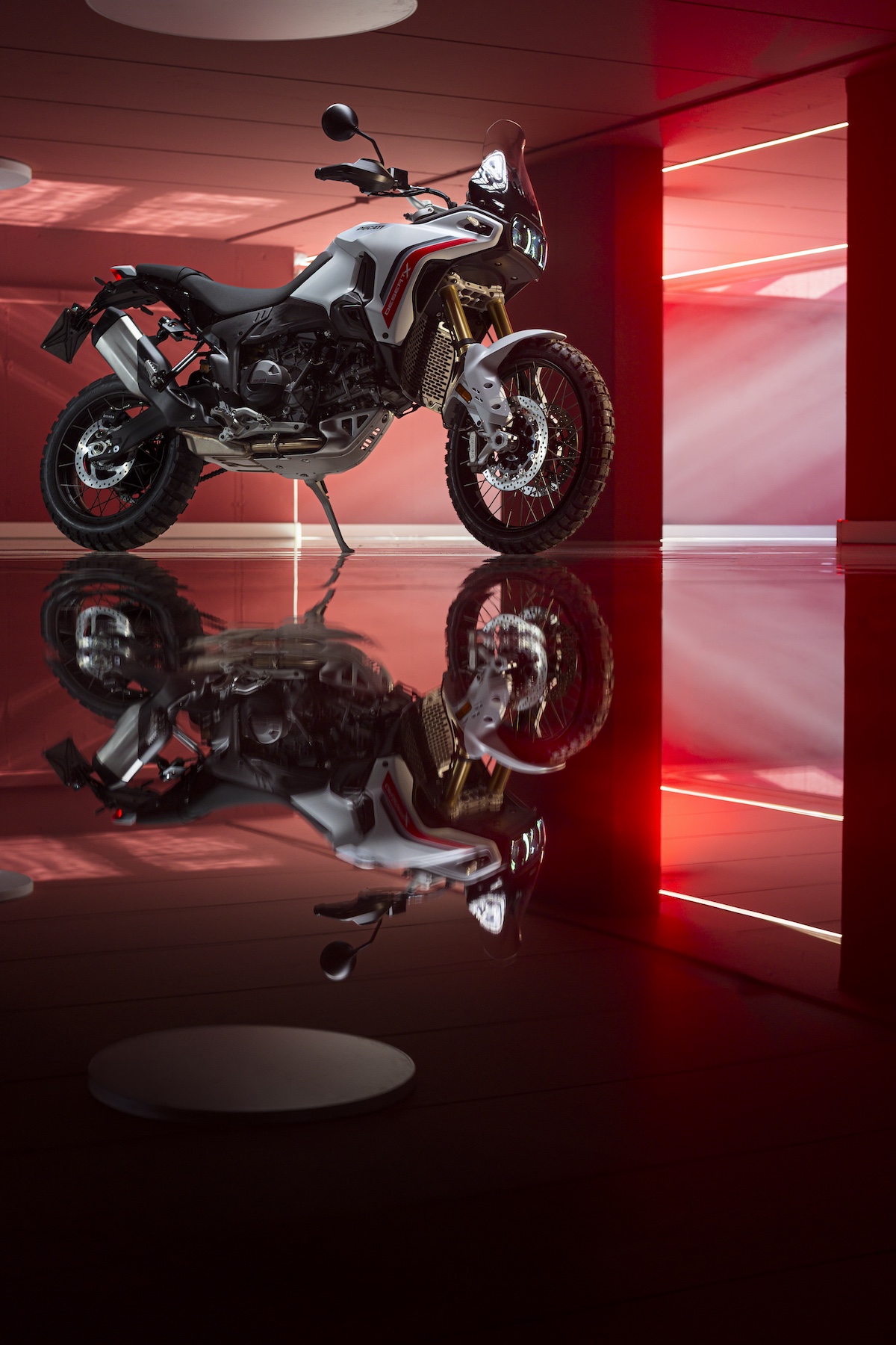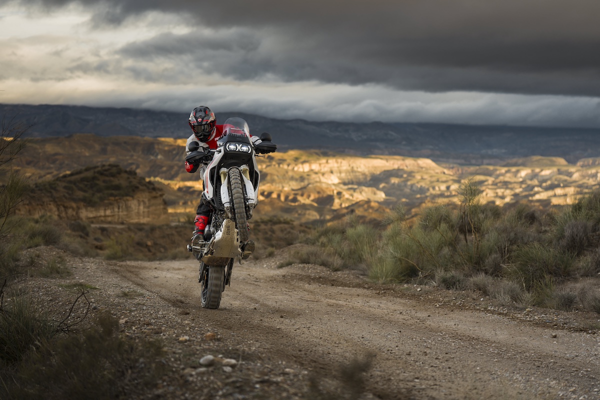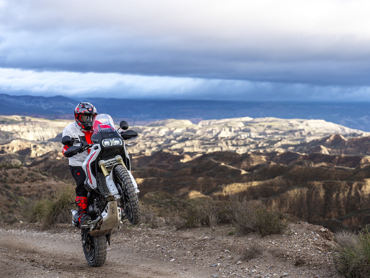 開発の目的は、ドゥカティらしい走る楽しさを維持しながら、オフロード性能をさらに高めること。その結果、デザインからシャシー、エンジン、電子制御まで完全刷新された新型モデルが誕生した。新型サスペンション、より軽量でエルゴノミクスを改善した燃料タンクなどにより、日常走行からロードツーリング、ハードなオフロードまで幅広いシーンで高いパフォーマンスを発揮する。