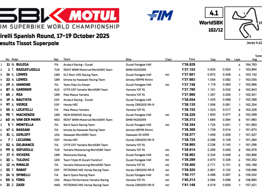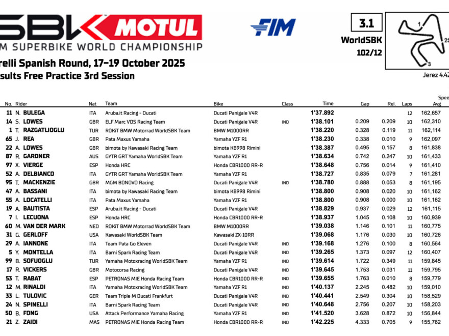 続きを読むFP3最速はブレガ ニコロ・ブレガ(Aruba.it Racing – Ducati)が、2025年最終戦ヘレスラウンドのフリー走行3回目(FP3)で唯一1分37秒台を記録し、最速タイムを