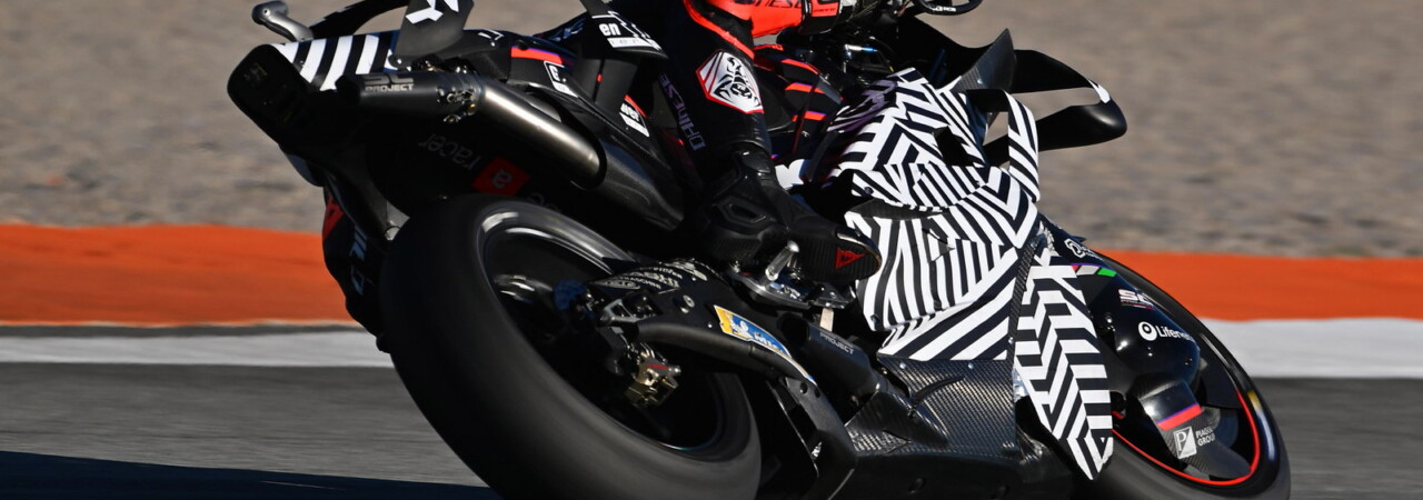 ファクトリー勢と比較するとエンジンの回転数を抑えていたり、カーボンフォークが供給されていなかったりと、スペック面で劣るファビオ・クアルタラロ。エンジンは基数制限から回転数を抑えているため仕方ないとして