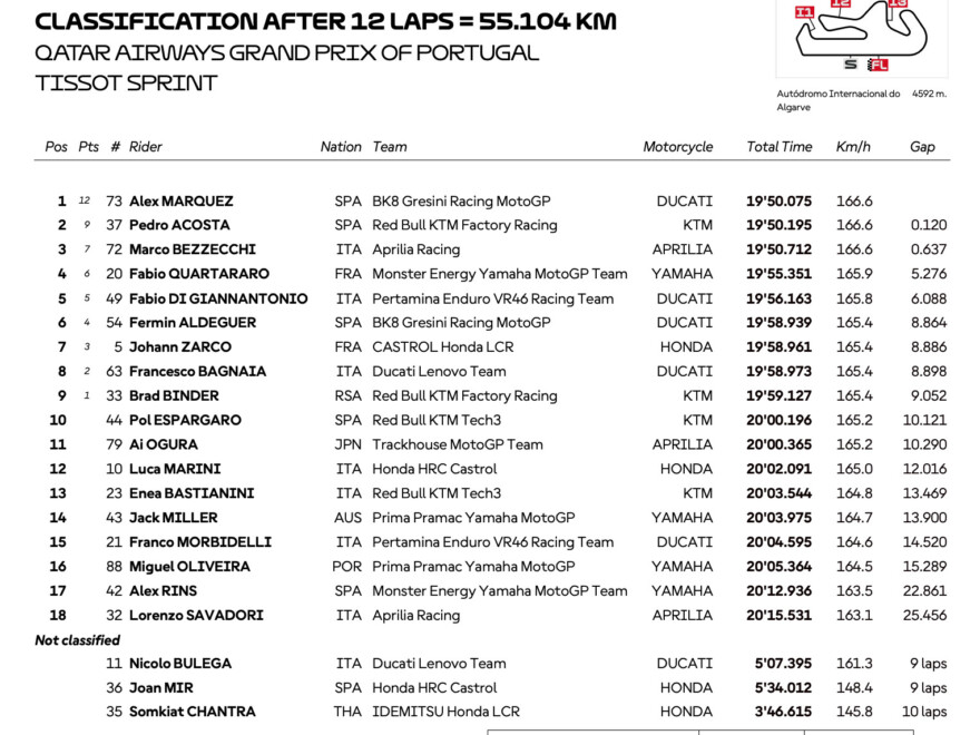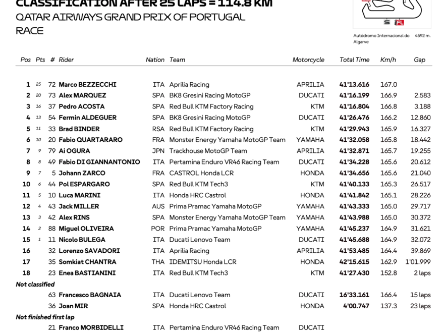 続きを読むポルトガルGPの決勝レースでは再びマルコ・ベッツェッキ(アプリリア・レーシング)がポールポジションから抜群のスタートを披露、その後ろにペドロ・アコスタ(レッドブルKTM)、アレックス・マルケス(グレシ